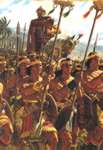 At the same time the trumpets were sounded, and the armored Spanish troops, both