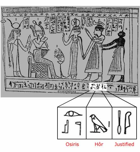 Again, Facsimile 3, explanation 5 reads: "Shulem, one of the King's principal waiters, as represented by the characters above his hand." What those characters actually say is "Osiris Hor, the justified forever."